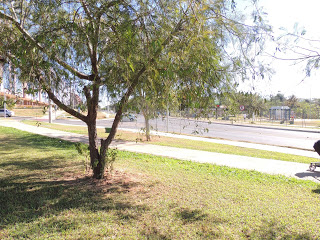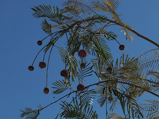Árvore com 5m de altura. Folhas compostas, bipinadas. Flor reunidas em glomérulos. Flores vermelhas.