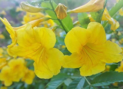 Inflorescências terminais ou axilares, com muitas flores tubulares, amarelas brilhantes. Surgem na primavera-verão, mas podem perdurar durante o outono e são visitadas por beija-flores.