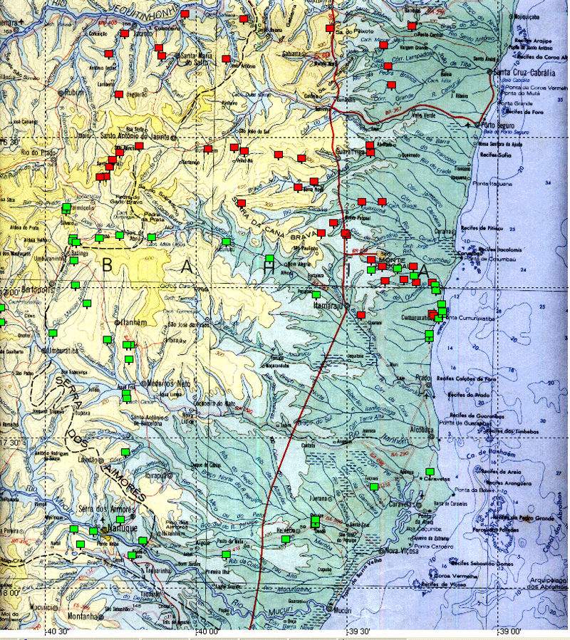 Verde – Pontos da Coleta I e Vermelho – Pontos da Coleta II
