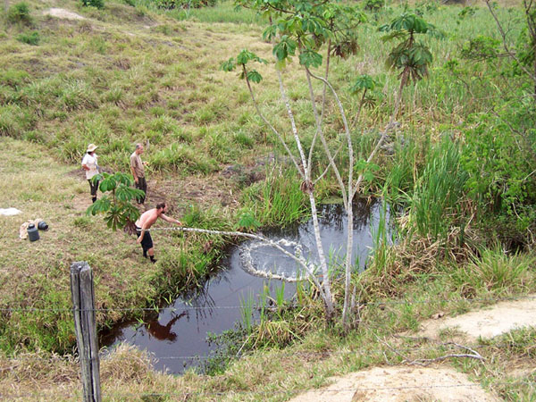 Foto 104 Córrego da Estiva (Arion lançando a tarrafa, Ronaldo e Carine). Córrego da Estiva. Córrego da Estiva.