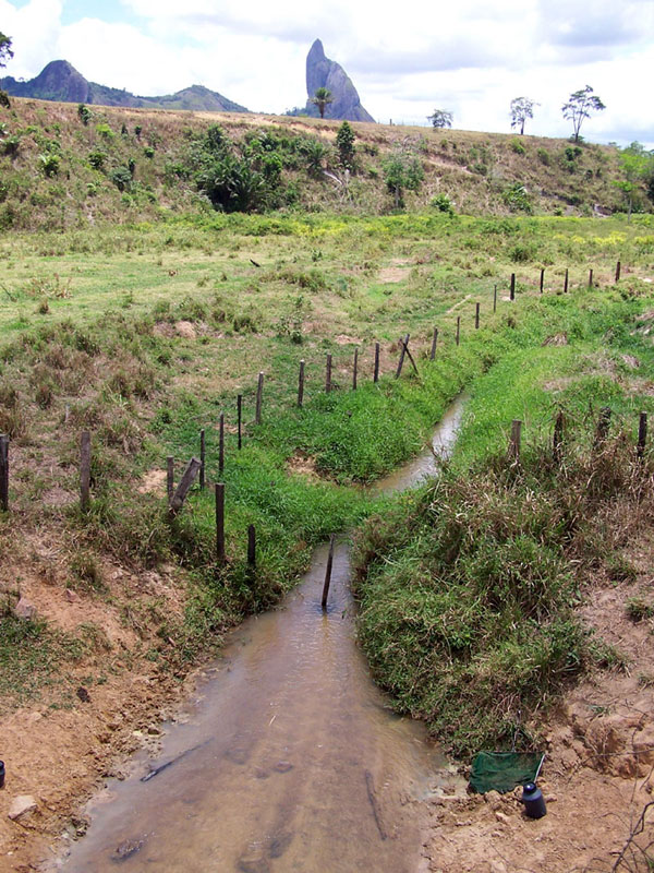 Foto 54 Córrego Jundiar na estrada de Itamaraju para Jucuruçu. Córrego do Jundiar na Estrada Itamarajú-Jucuruçu (Ronaldo e Carine). Montanhas de Itamaraju vistas do córrego do Jundiar. Monte Pescoço visto de Itamaraju.