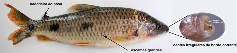 Algumas características da família Anostomidae estão indicadas na figura acima.