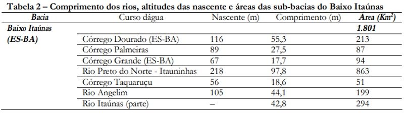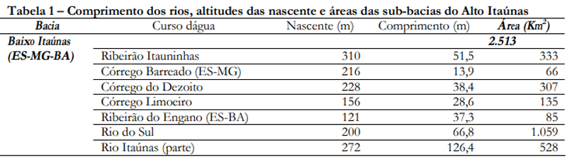 O rio Itaúnas (Figura) localiza-se ao sul da Bahia e a nordeste de Minas Gerais, n oextremo norte capixaba, tendo suas nascentes principais nos municípios capixaba de Ponto Belo e Mucurici.