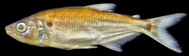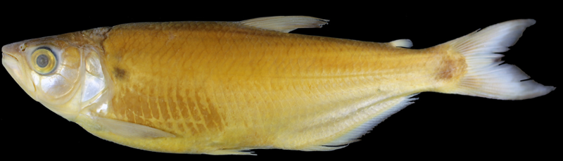 | 1B | Nadadeiras caudal, dorsal, adiposa, anal e pélvica transparentes ou amareladas; osso infraorbital 5 (io 5) aproximadamente tão alto quanto largo. | 2 | |