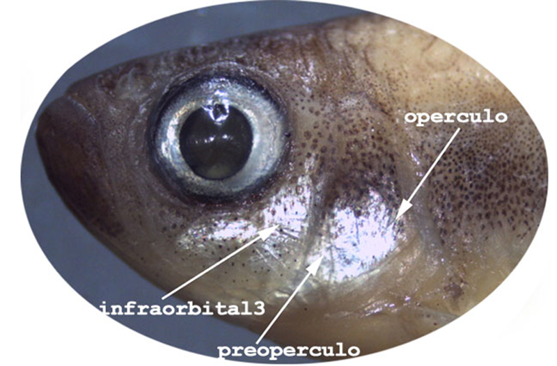 | 2A | Premaxilar com apenas 4 dentes na série interna; osso infraorbital 3 geralmente extendendo-se até a superfície externa do preopérculo. | 3 | ![]() |