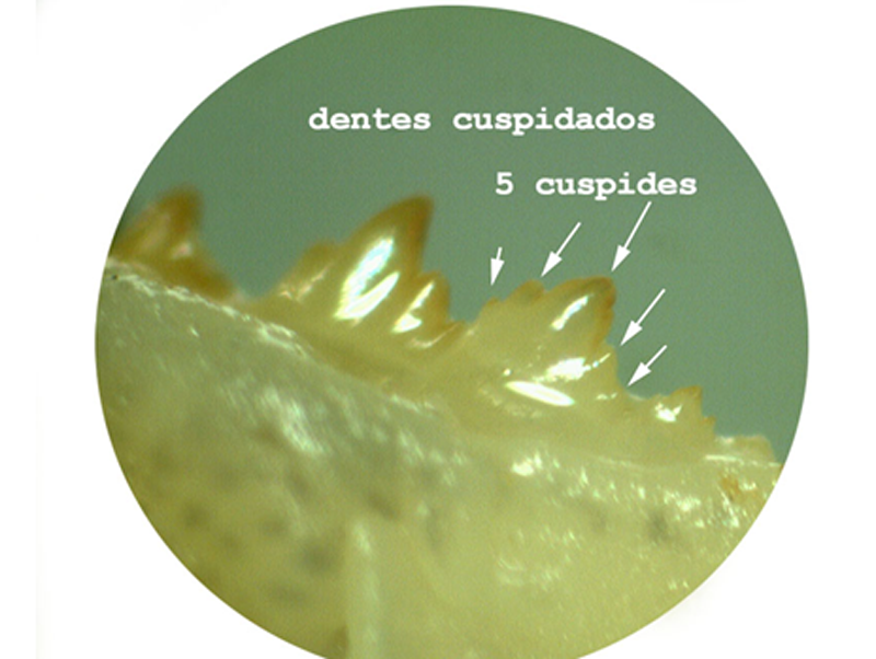 | 6B | A maioria dos dentes no premaxilar, maxilar e dentário cuspidados. | 7 | ![]() |