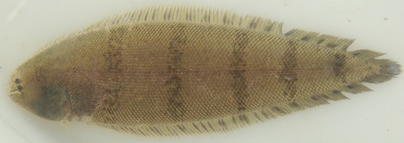 | 1B | Focinho alongado; boca ventral e aproximadamente curva; linha lateral bem desenvolvida no lado com olhos; nadadeiras pélvicas confluentes com a nadadeira anal. | Cynoglossus (Atlântico leste a oeste do Pacífico) | ![]() |