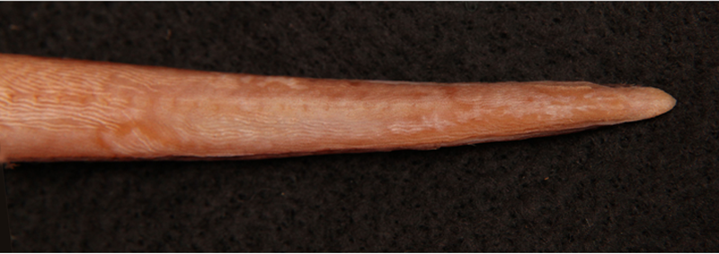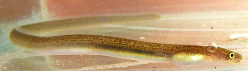 | 2B | Origem da nadadeira dorsal situada bem a frente da vertical que passa pela origem do ânus; dentes presentes no vômer. | Myrophis | ![]() |