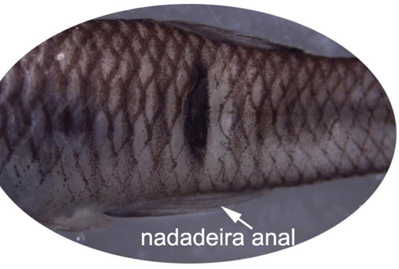 | 1B | Sem apêndice carnoso em forma de colher na nadadeira anal modificada; sem espinhos retrorsos no raio 3 da nadadeira anal modificada em gonopódio. | 2 | ![]() |