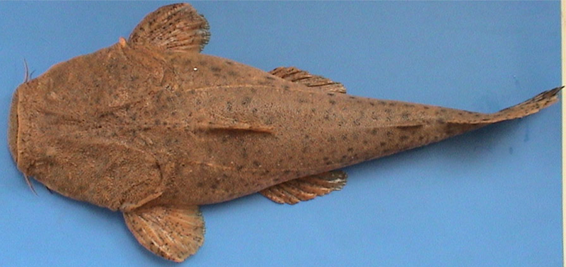 | 1A | Cabeça muito larga e achatada; mandíbula projetando-se além da maxila superior; topo da cabeça rugoso com cristas ósseas. | Lophiosilurus | ![]() |