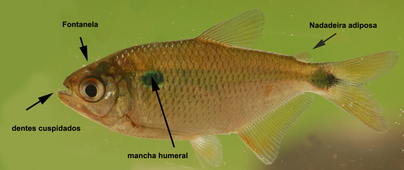 Algumas características do gênero Astyanax estão indicadas nas figuras acima.