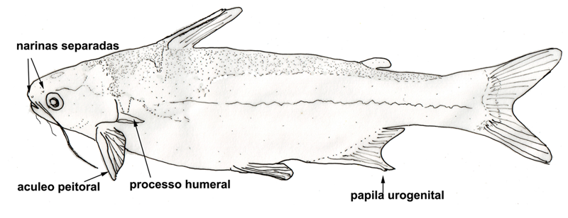 Algumas características da família Auchenipteridae, são ilustradas na figura acima.