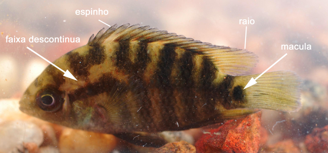 Algumas características do gênero Australoheros estão indicadas na figura acima.