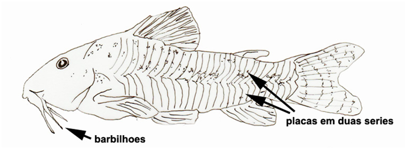Algumas características da família Callichthyidae, são ilustradas na figura acima.