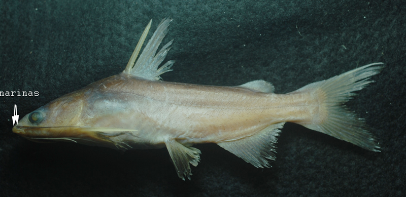 Algumas características do gênero Cathorops estão indicadas na figura acima.
