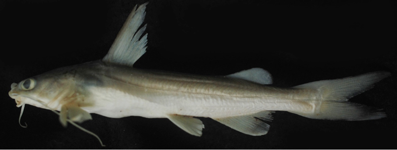 | 1B | Par único de barbilhões mentonianos; barbilhões maxilares comprimidos, em forma de fita; filamentos dérmicos dos espinhos das nadadeiras dorsal e peitoral alongados. | Bagre | ![]() |