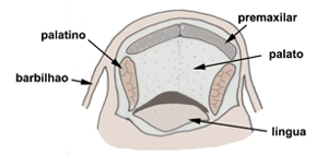 | 3B | Placas dentígeras acessórias no palatino fixas no palato, com dentes molariformes e arredondados; processo cleitral posterior muito curto. ![]() | Cathorops | ![]() |