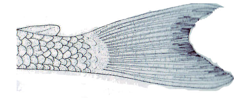 | 3B | Pedúnculo caudal não achatado dorso-ventralmente; de formato oval, arredondado, ou triangular em seção transversal; nadadeira adiposa raramente ausente. | 4 | ![]() |