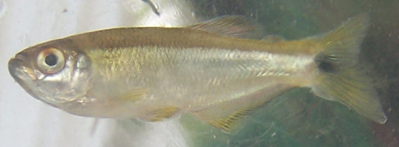 | 1B | Faixa lateral escura estreita com mácula arredondada na base da cauda; corpo alto, altura do corpo entre 25 e 27% no comprimento padrão; nadadeira anal com 25 a 26 raios ramificados; linha lateral com 46 a 49 escamas; sem ganchos nos raios caudais medianos de machos maduros, mesmo quando com a glândula caudal desenvolvida. | Mimagoniates sylvicola | ![]() |
