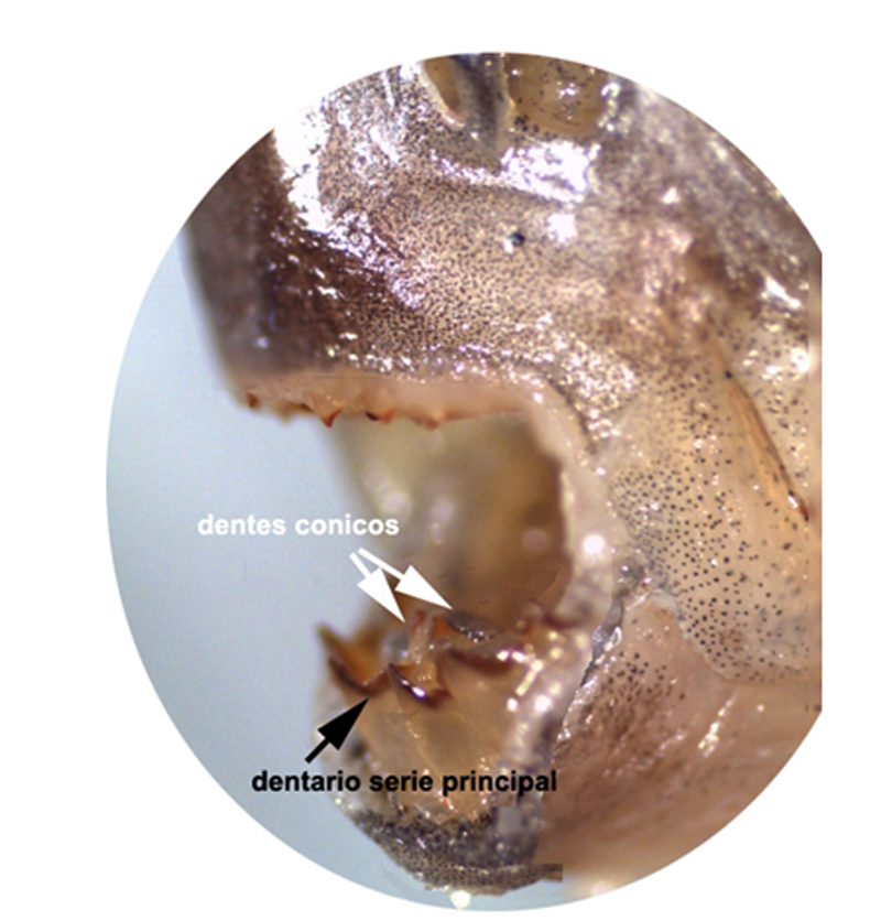| 2A | Espinho pré-dorsal presente (voltado para a frente, visível após dissecção da pele, como ilustrado) | 3 | ![]() |