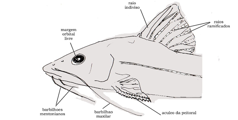 Chave de SiluriformesOs Siluriformes do Tabuleiro estão distribuídos em cinco famílias: Auchenipteridae, Callichthyidae, Heptapteridae, Loricariidae e Trichomycteridae. |