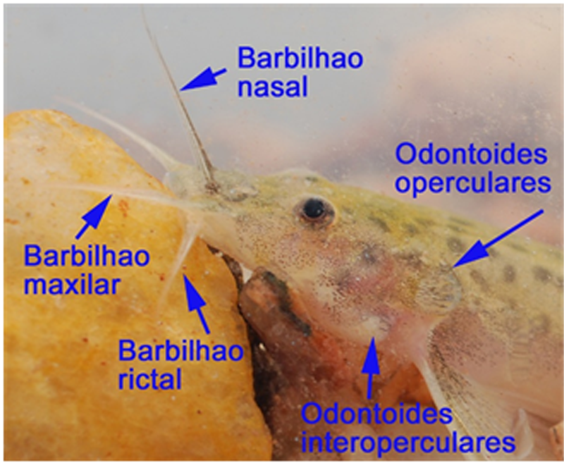 | 3A | Opérculo e interopérculo provido de espinhos curvos (odontóides); barbilhões nasais geralmente presentes. | Trichomycteridae | ![]() |