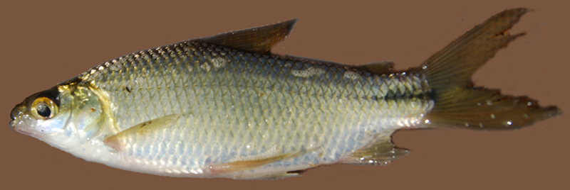 São peixes de tamanho entre 45 e 55 mm de comprimento padrão. A nadadeira adiposa está ausente. O istmo e peito são escamados. Possuem 3 a 4 escamas entre anus e nadadeira anal. Faixa lateral escura larga, largura corresponde a 1 escama e meia ao longo da linha mediana do corpo. Nadadeira caudal despigmentada, sem manchas ou desenhos, apenas com uma pequena mancha basicaudal destacada da faixa lateral.