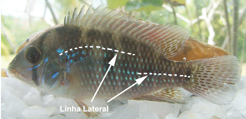 Algumas características do gênero Geophagus estão indicadas na figura acima.