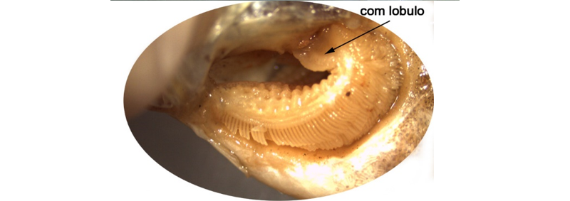 Facilmente distinguido dos demais Cichlidae nos tabuleiros pelo ramo superior do primeiro arco branquial com lóbulo proeminente na região dos rastros. Para visualizar o lóbulo é preciso levantar o opérculo.