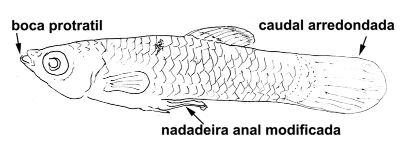 Algumas características da família Poeciliidae são ilustradas na figura acima.