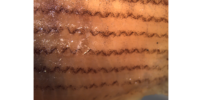 Algumas características da espécie Prochilodus argenteus estão indicadas na figura acima.