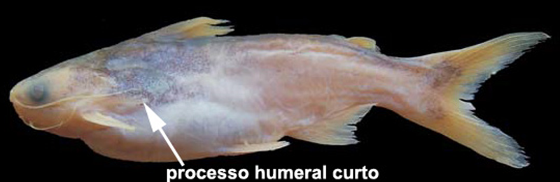 Algumas características da espécie Pseudauchenipterus affinis estão indicadas na figura acima.