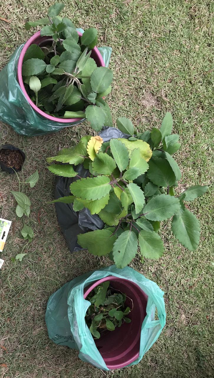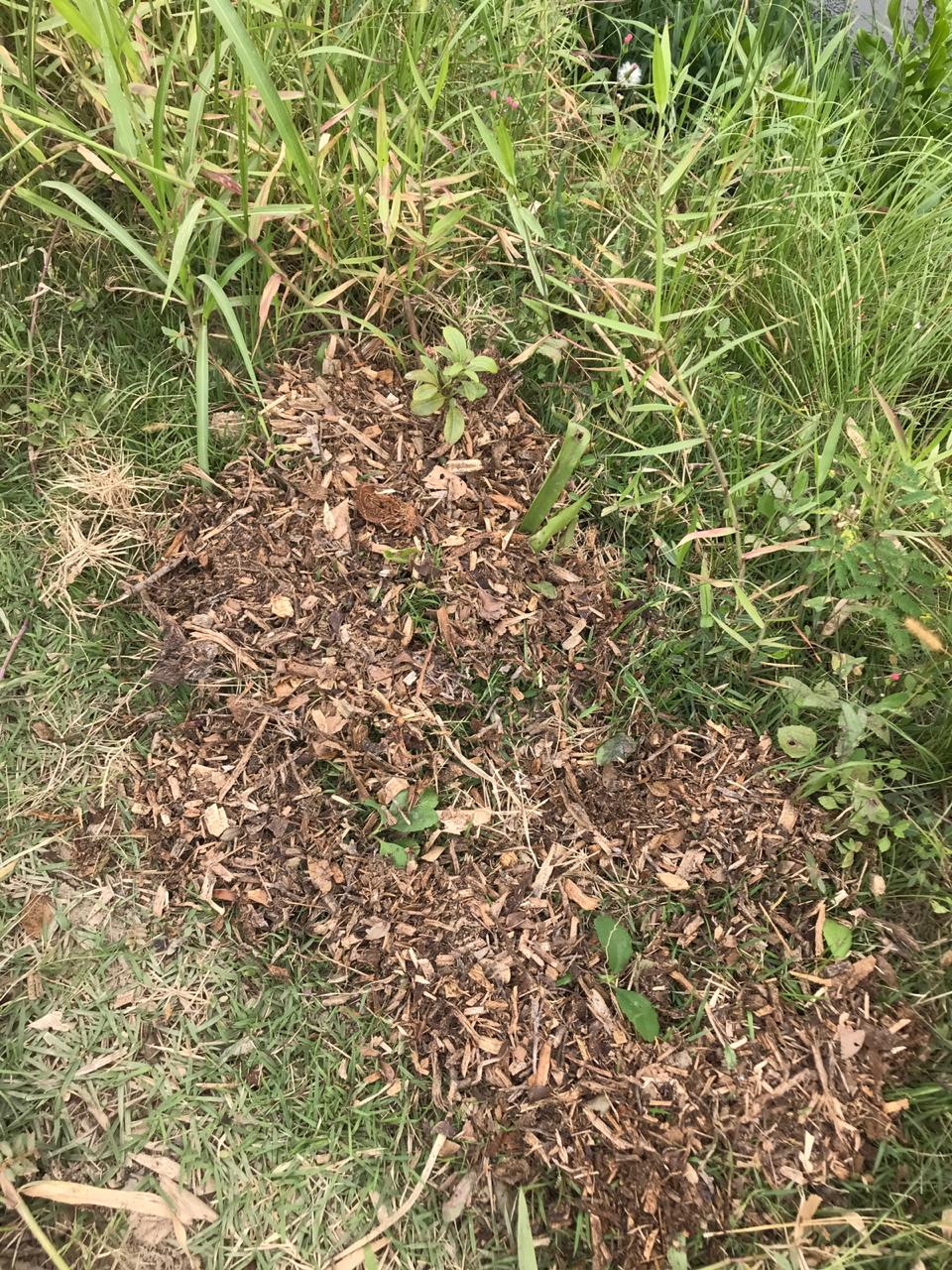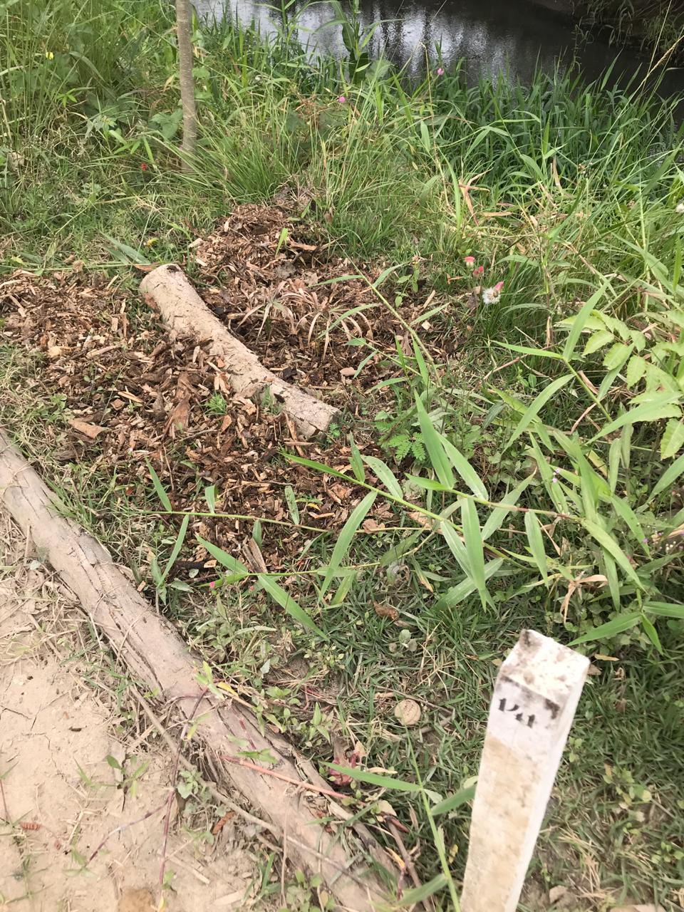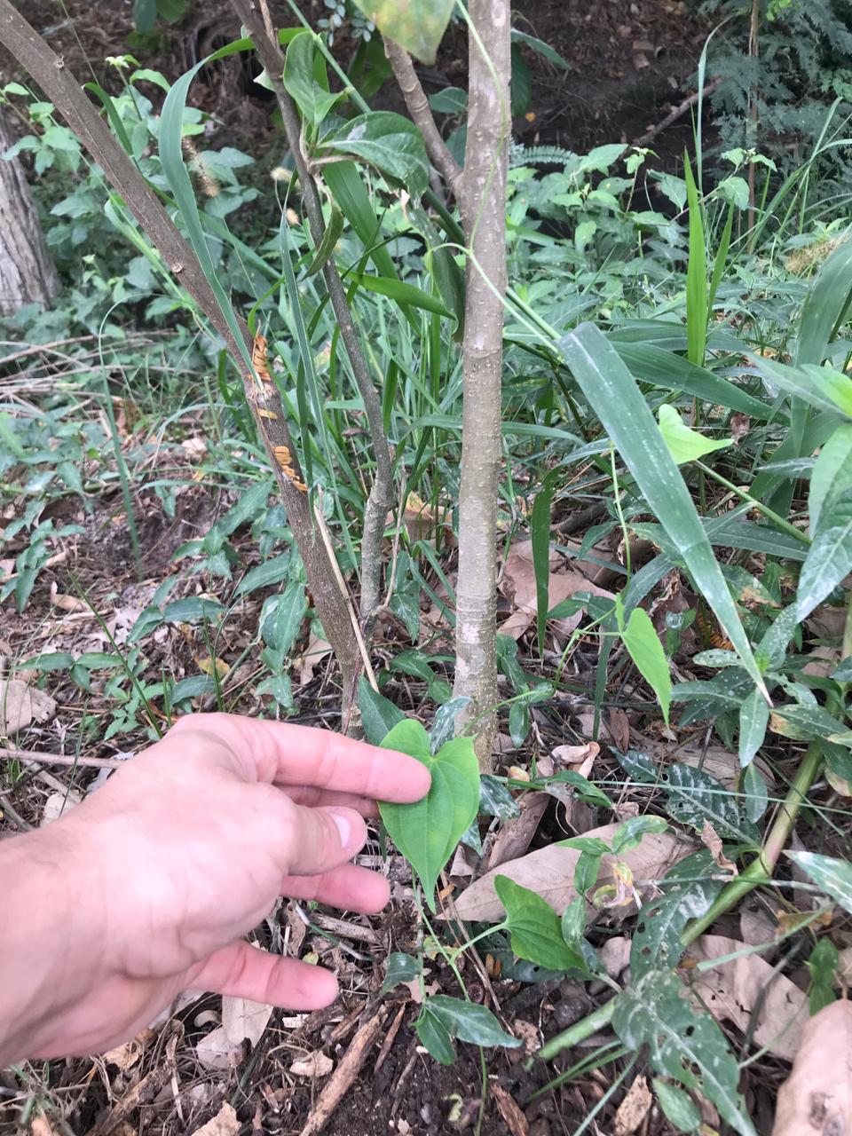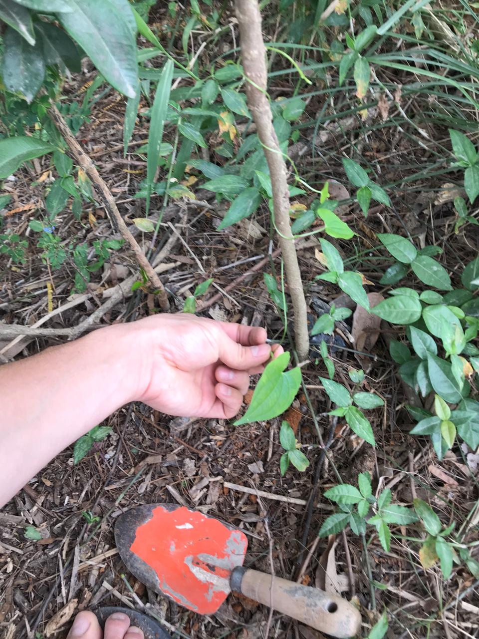 Na segunda-feira, 7/09/2020, Rafael e Bia estiveram trabalhando nos ninhos. Plantaram duas mudas de Cara-do-ar/Cara-moela (Dioscorea bulbifera) (no pé das árvores das estacas 122 e 124); suculentas diversas e sementes de lavanda, mamão e feijão de porco entre as estacas 120-140; roçamos um pouco do mato com a enxada e jogamos tb um pouco de material.