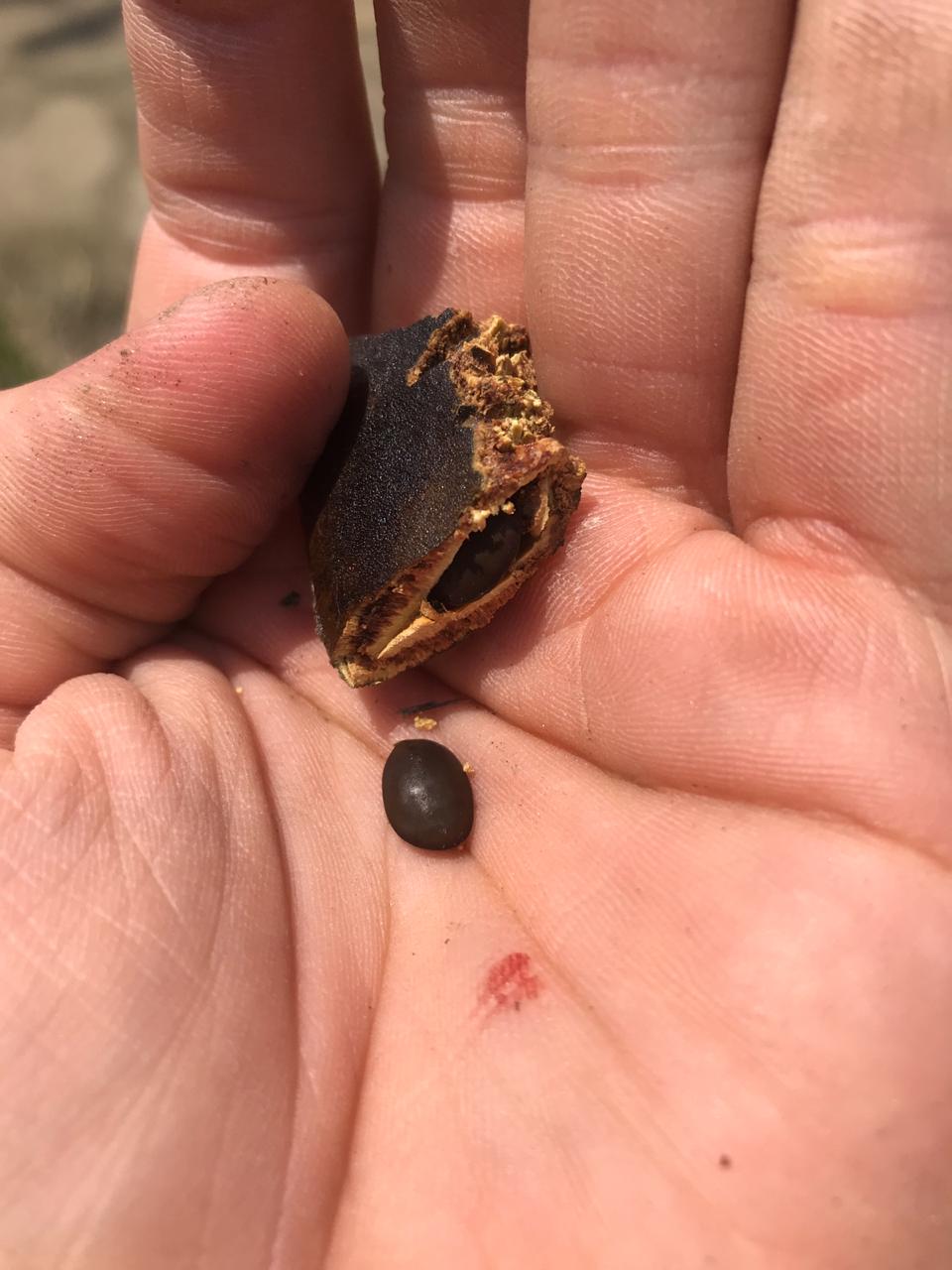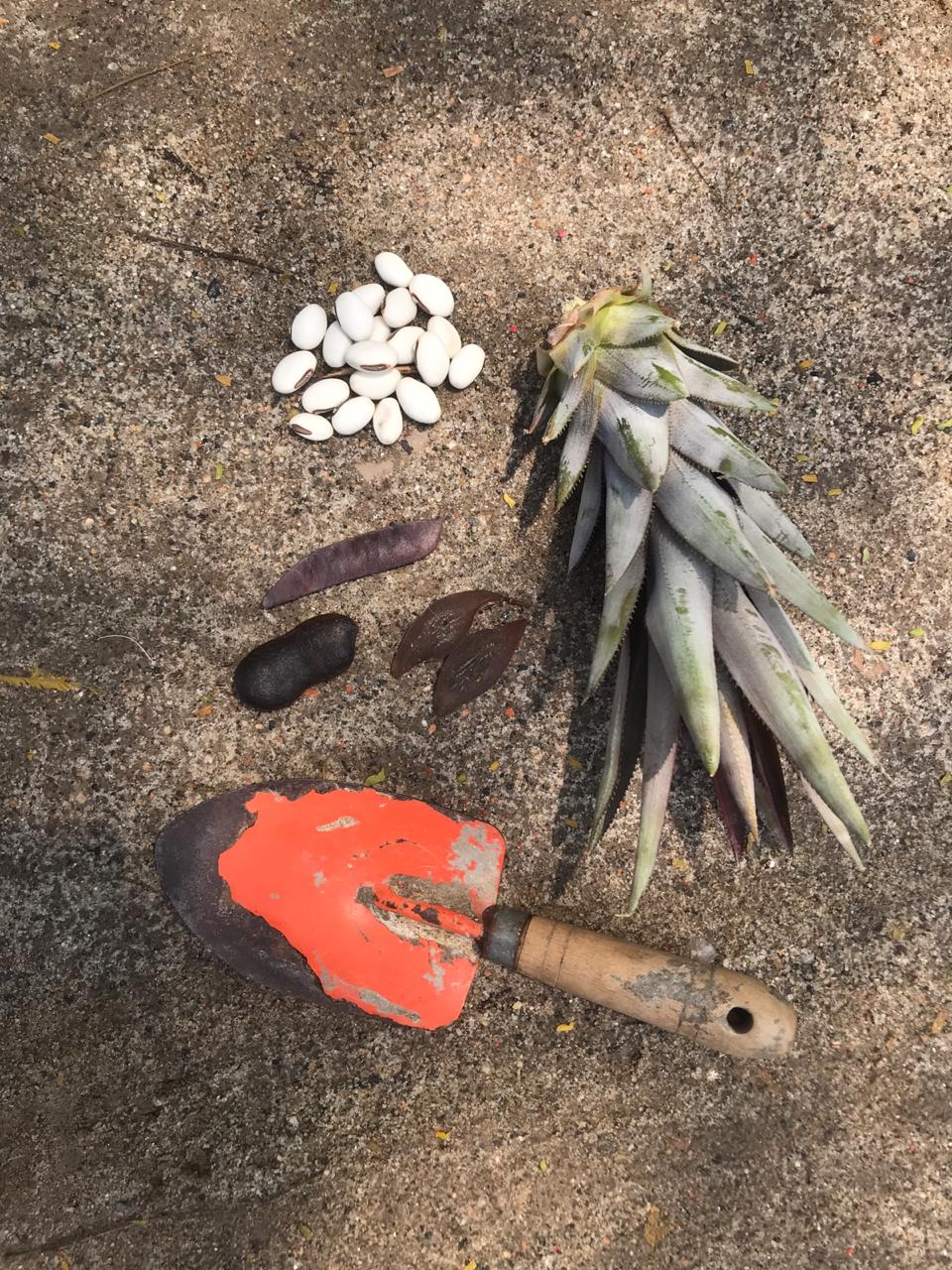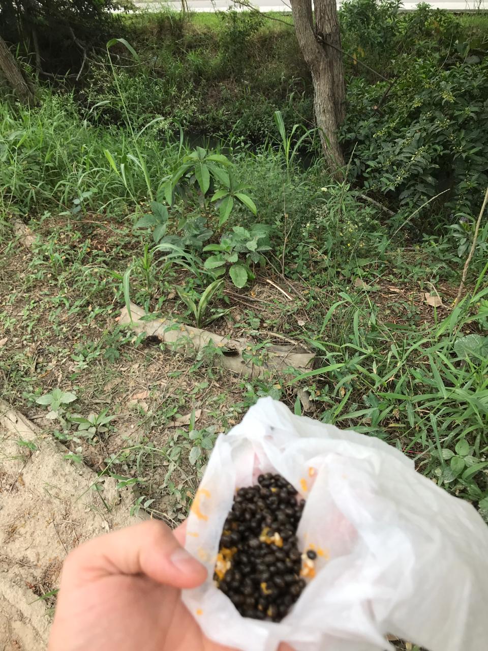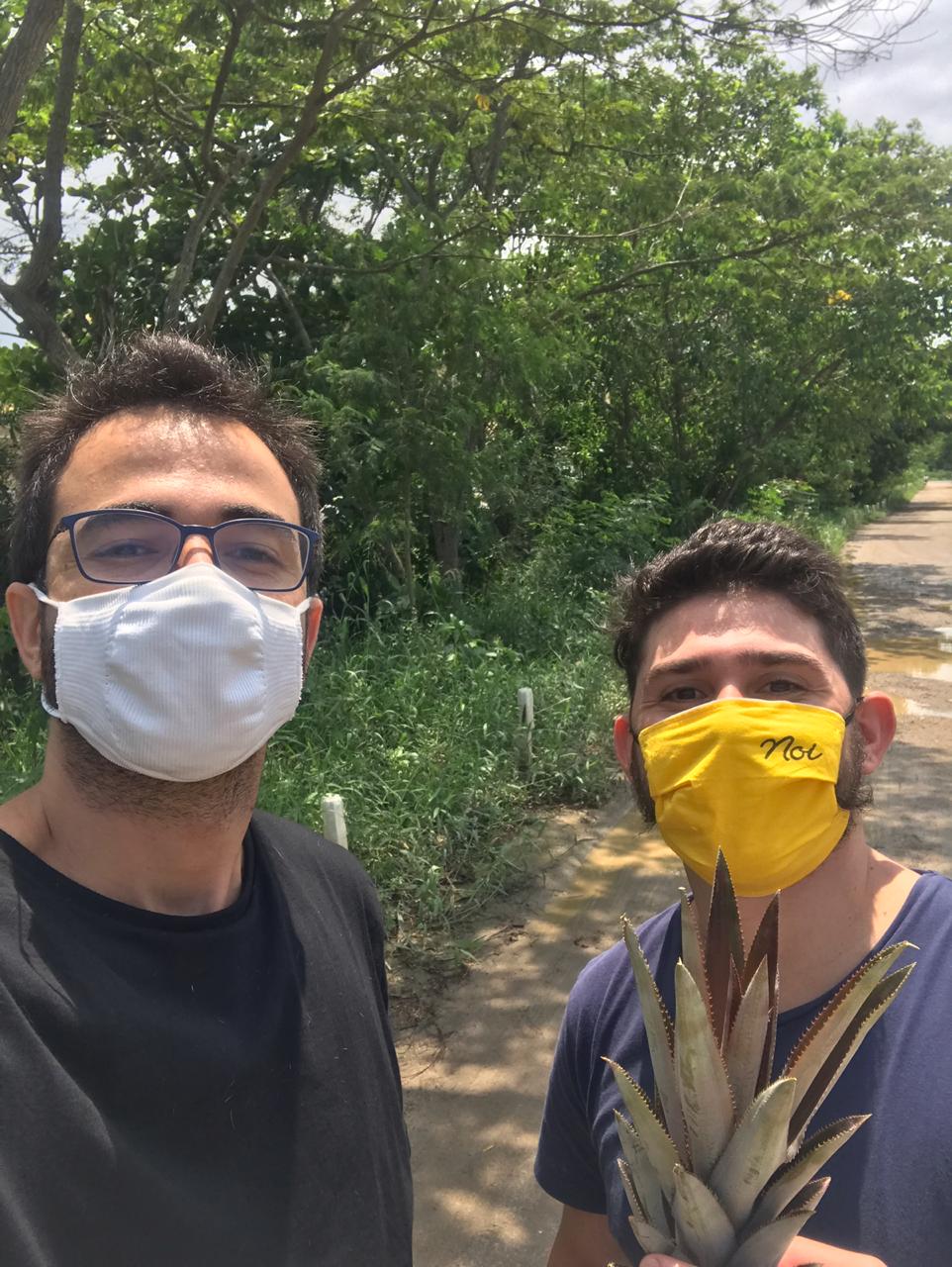 Na sábado, 10/10/2020, Rafael e Pedro Callil estiveram trabalhando nos ninhos. Plantaram um coroa de abacaxi na estaca 135 e sementes de feijão-de-porco, pau-ferro e flambyant-mirim. Entre as estacas 135-140.