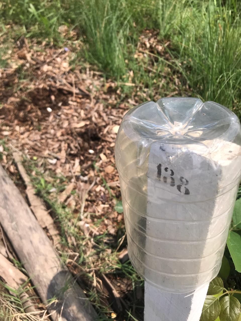 No domingo, 16/08/2020, Bia e Borges estiveram trabalhando nos ninhos. Foram colocadas proteções em todas as estacas, exceto as mais finas. Vão providenciar outro tipo de garrafa. Foi identificada a falta da estaca 140.