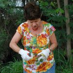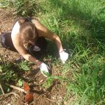 Bebel com ajuda da Alice cuidadando dos ninhos que adotou