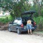 Olha como estão as mandiocas. Mas uns meses e podemos colher