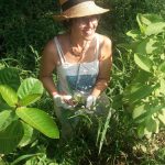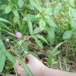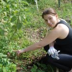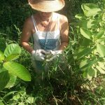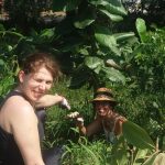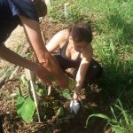 Bebel com ajuda da Alice abrindo a vagem de feijão