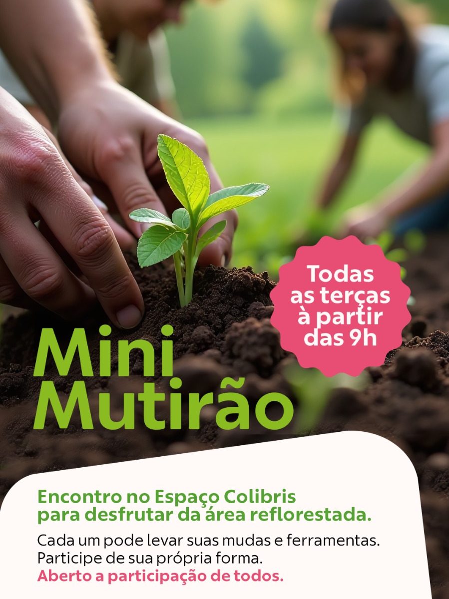 Os mini mutirões são realizados entre os mutirões para realização de trabalhos de limpeza, poda, plantio de sementes e mudas e observação de plantas e animais