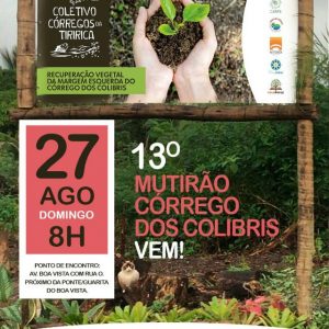Convidamos a todos os membros do Coletivo Córrego da Tiririca e seus amigos, a participarem do décimo terceiro mutirão. Com apoio da Amadarcy e de diversos voluntários e órgãos públicos, continuando o plantido de mudas.🤝🌱 Será realizada a construção de mais alguns ninhos, com o plantio de mais de 90 mudas e muvucas de sementes.